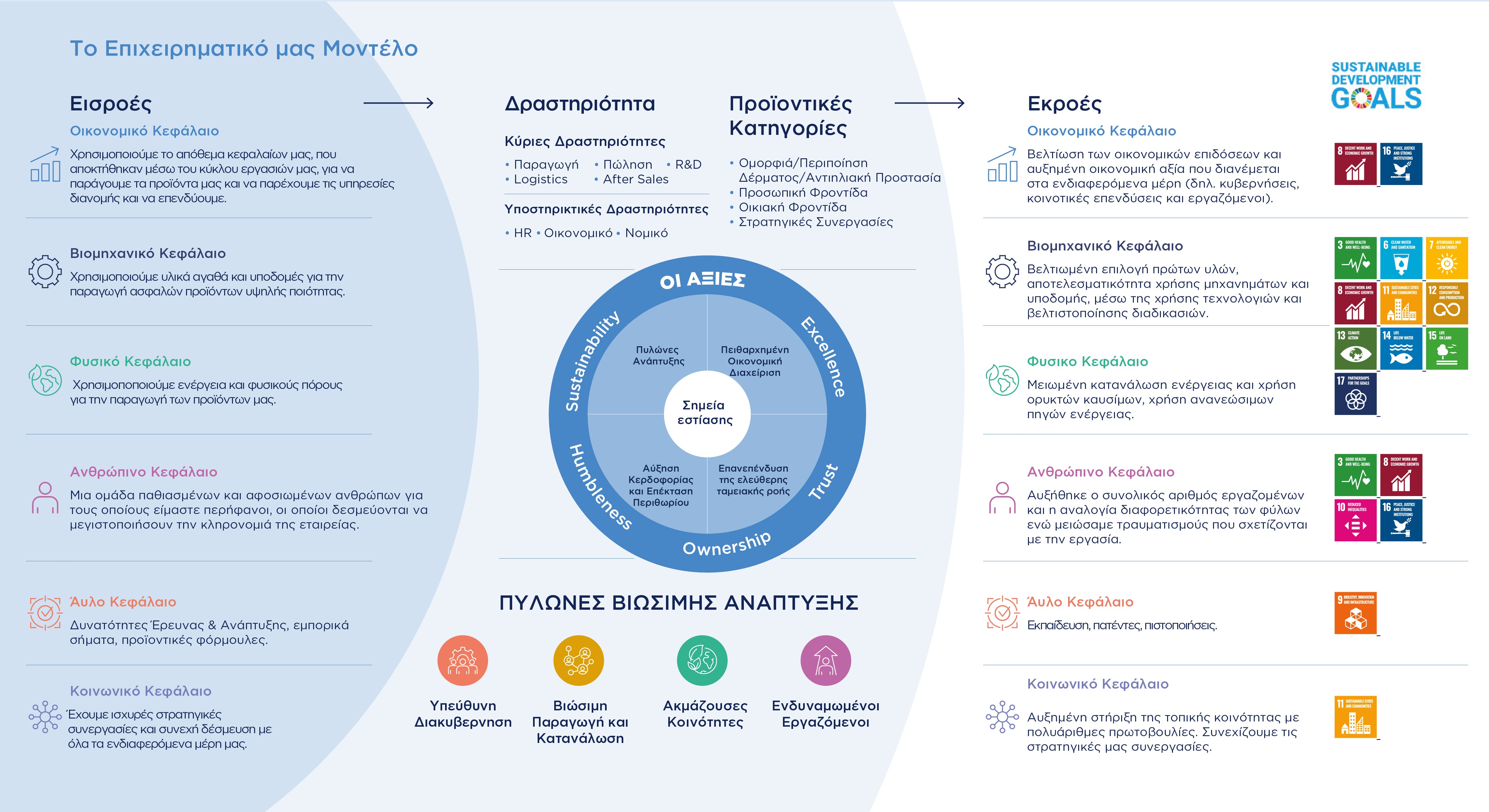 Καθοδηγούμενοι από τον σκοπό μας, ακολουθούμε και επενδύουμε σε μια σαφή στρατηγική που έχει διαμορφωθεί καθ’ όλη την διάρκεια της επιτυχημένης ιστορίας μας, και η οποία δημιουργεί βιώσιμη κερδοφόρα ανάπτυξη και αξία για όλους τους ενδιαφερόμενους.