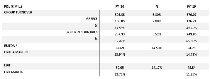 More specifically, during FY 2020 the Group’s turnover reached €393.38 million from € 370.07 million in 2019, up by 6.30%.